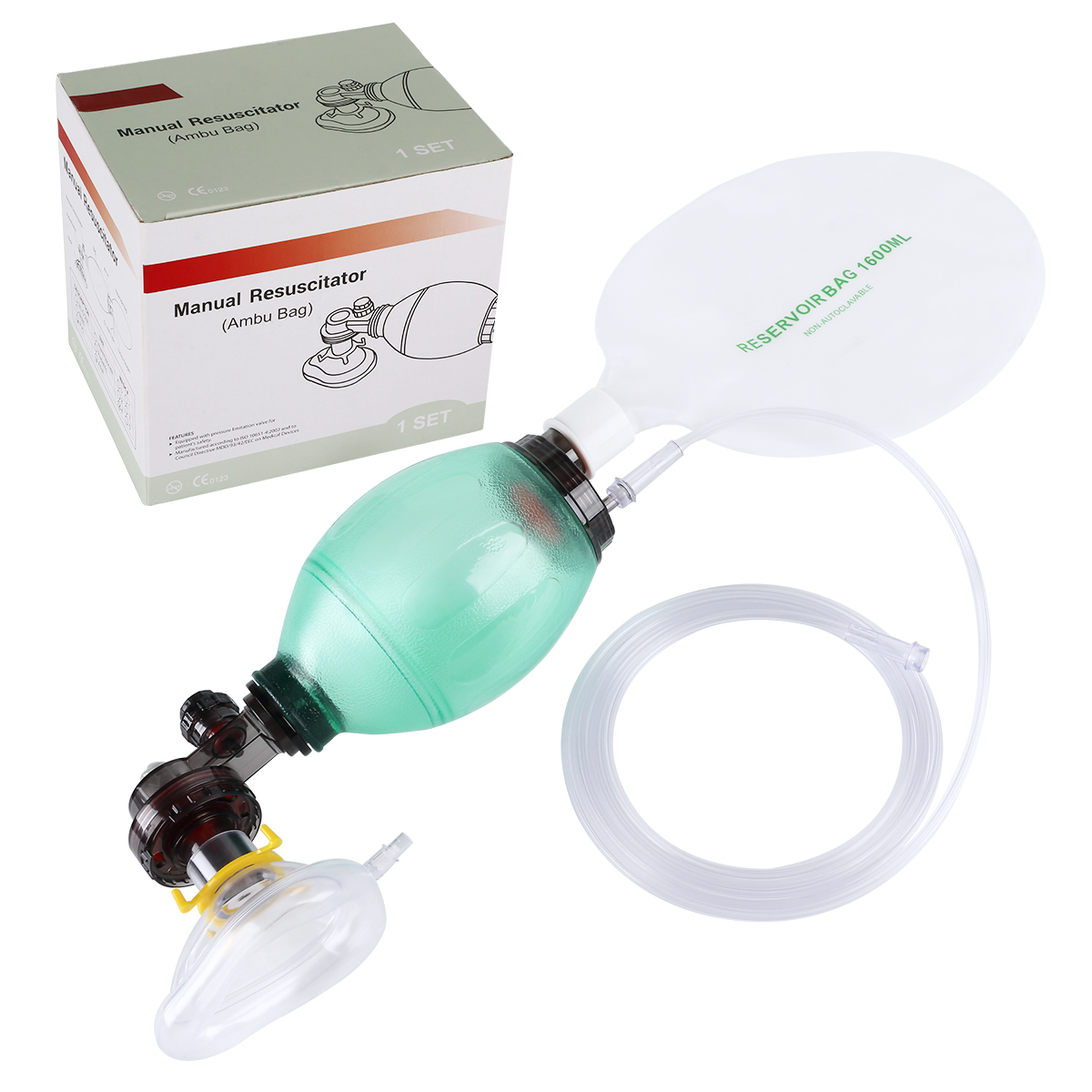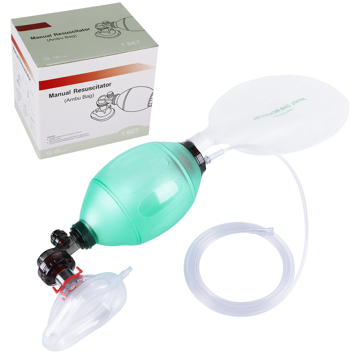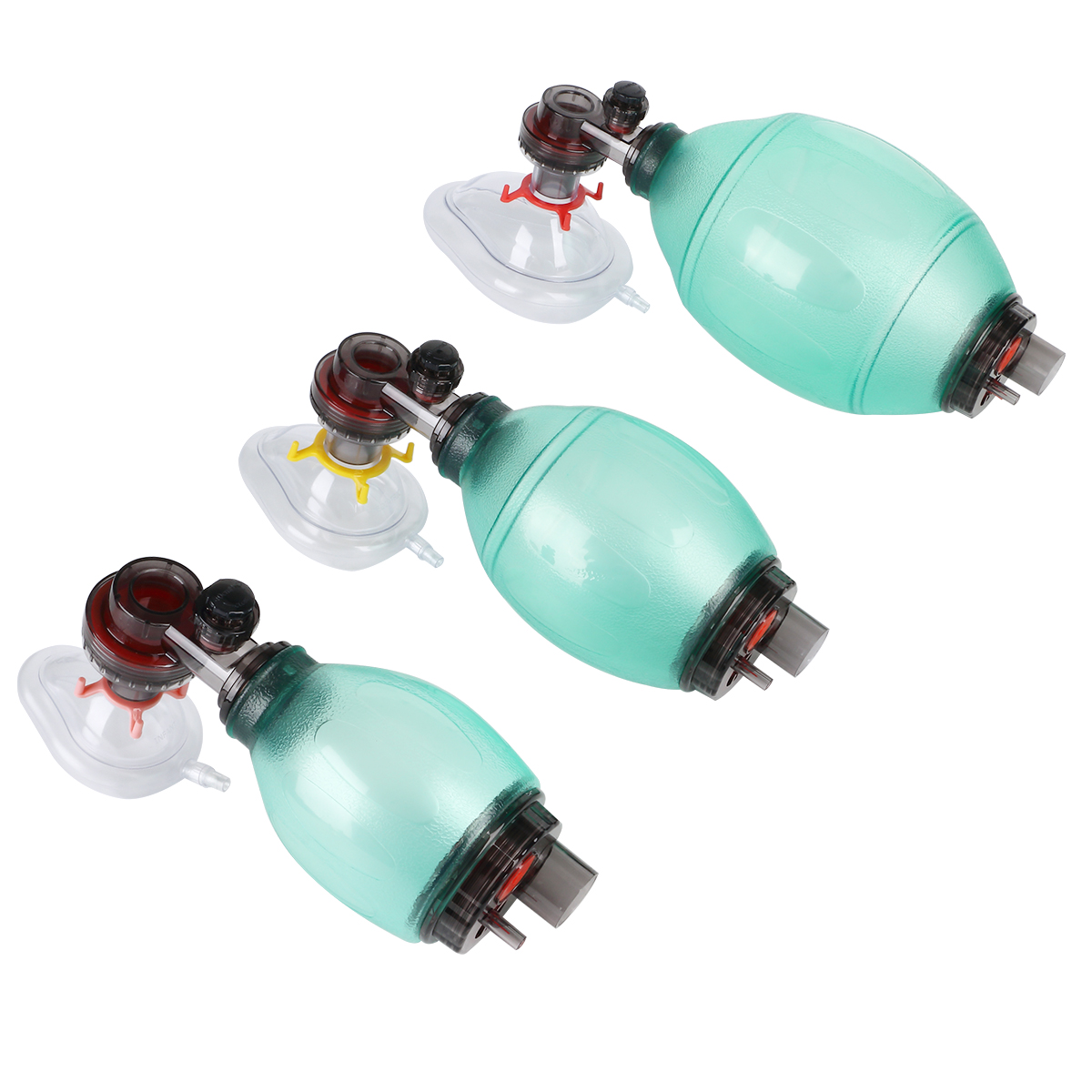 本产品用于对病人作人工呼吸。由面罩、复苏球囊、呼吸阀、进气阀组、储气袋、氧气管、呼气正压阀组成。可选配件(面罩、呼气正压阀、呼吸阀转换接头、储气袋、氧气管)。结构简单,操作方便,易于携带,可调节,无需电动装置,有无压缩氧气源的场合均可使用。