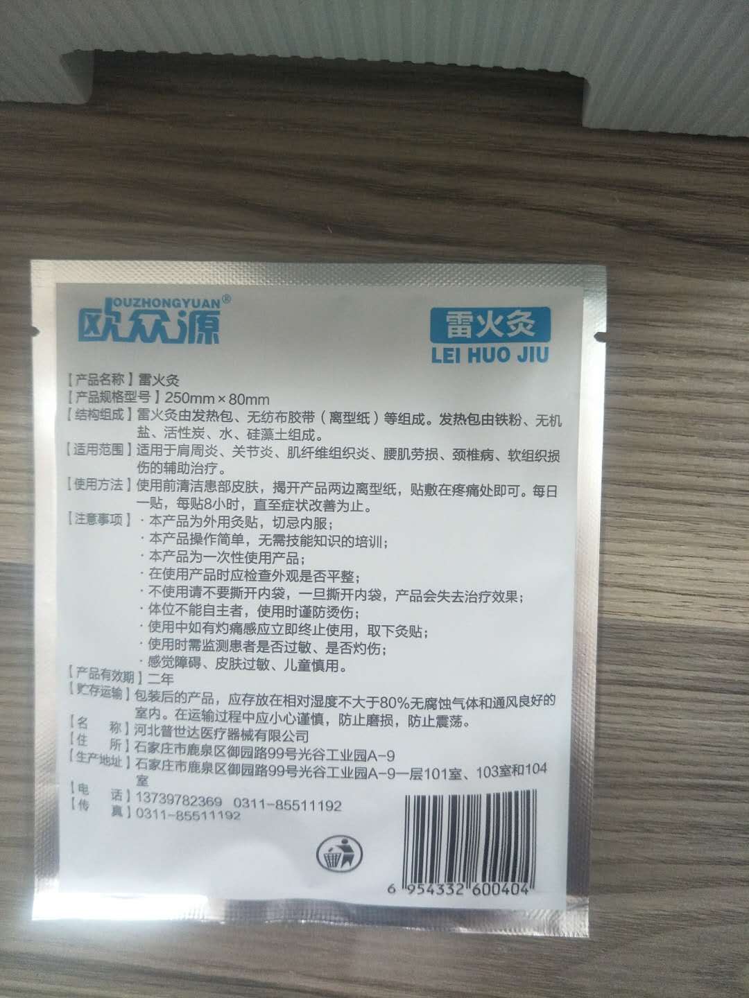 雷火灸由发热包、无纺布胶带(离型纸)等组成。发热包由铁粉、无机盐、活性炭、水、硅藻土组成。