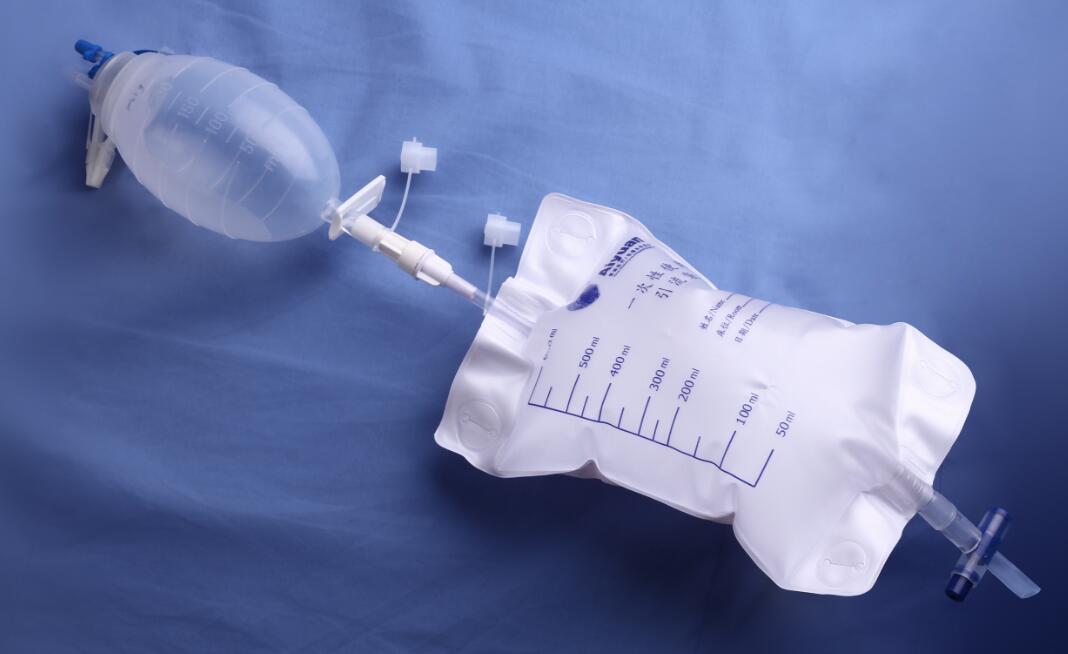 产品由引导针、引流管(带硫酸钡材料制成的X光显影标记线)、吸引链接管、止水夹、负压球/负压罐组成。引流管、负压球采用硅橡胶制成;吸引连接管、负压罐采用软聚录乙烯塑料制成;止水夹采用聚丙烯制成;引导针采用30406Cr19Ni10不锈钢材料制成。根据引流管规格以及球/罐容积不同分为16种。产品经环氧乙烷灭菌后,其环氧乙烷残留量应≤10μg/g。产品应无菌。