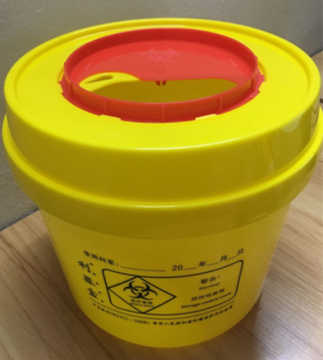 利器盒产品材质:采用全新聚丙烯塑料(PP),不含PVC,具有方便、安全、无毒、耐穿刺、不渗漏、易于高温焚烧、封闭后无法以在不破坏的情况下打开