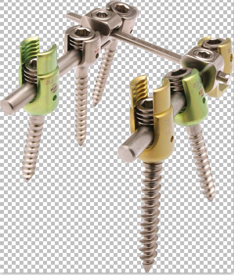 该产品包括椎弓根螺钉(单轴、多轴)、连接棒、压紧固定螺母、螺帽、横向连接装置及椎板钩(椎弓根钩、板钩、左直角钩、右直角钩、左侧角度椎板钩、右侧角度椎板钩、横向连接器(开)、横向连接器(关)、轴向连接器、骶骨连接器)。由符合GB/T13810标准要求的TC4 ELI钛合金材料制成。表面无着色。非灭菌包装。