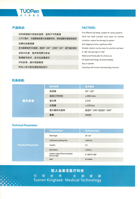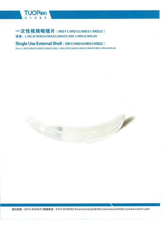 供临床挑起患者会厌部暴露声门,指引医护人员准确进行气道插管供麻醉或急救用,也可用于口腔内诊察,治疗,本产品仅供与本公司生产的麻醉视频喉镜系列产品配套使用。
