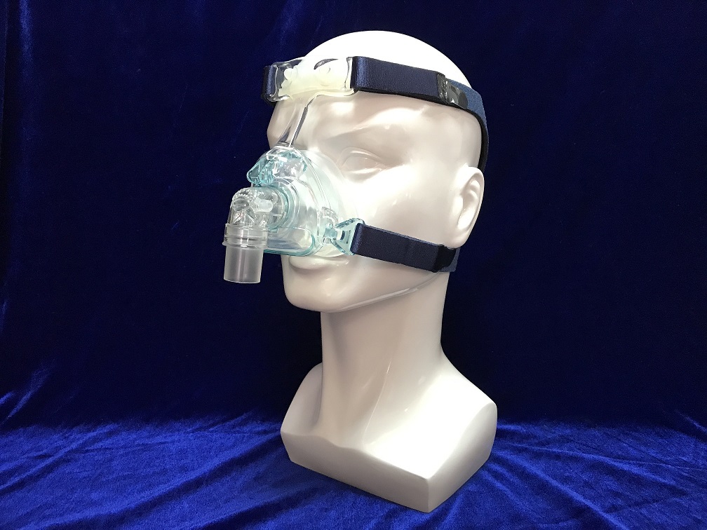 由面罩或鼻罩(材质:硅胶)、面罩或鼻罩框架(材质:PC或PP)、头带(材质:莱克布和丁苯橡胶发泡体)、头带扣、L接头和气源接头组成,产品未灭菌。