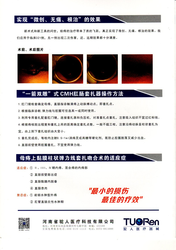 适用于各期内痔及混合痔或直肠良性息肉的套扎治疗。