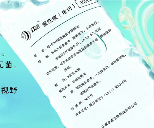 【成份】 每100ml灌洗液含甘露醇5g 【性状】 本品为无色澄清、透明液体;无导电性。 渗透压275毫摩尔/升;PH4.5-6.5;无菌、无致热源。 【适应症】 用于皮肤表面冲洗及黏膜等清洗等,保持视野清晰。 【规格】 3000ml/袋。