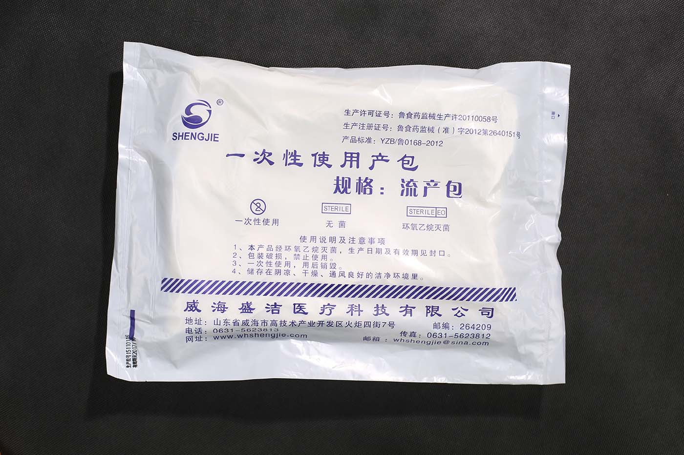 自然分娩产包基本配置为产垫,辅助配置为中单、尿布、会阴垫、裤腿、包巾、肚脐绳、一次性使用医用橡胶检查手套;流产包基本配置为洞巾,辅助配置为中单、换药碗、镊子、一次性使用橡胶外科手套。