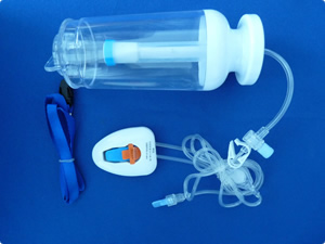 结构为泵壳、储液囊、过滤器、注药口、导管、流量控制装置、自控给液装置和外圆锥接头组成,管路长度:≥0.9m;标称流量为2.0ml/h、3.0ml/h、4.0ml/h;标称自控给液量:0.5ml/次;标称自控给液再充装时间:15min;标称容量:100ml,充装容量:110ml,残留量10ml;标称容量:200ml,充装容量:220ml,残留量20ml。