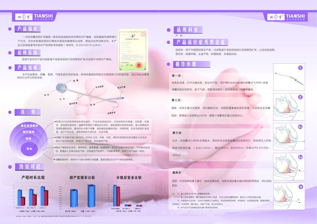 一次性使用球囊宫颈扩张器是一款促宫颈成熟的非药物性引产器械,采用物理引产方法,仿生性刺激宫颈自行释放内源前列腺素软化成熟,更贴近自然成熟状态。