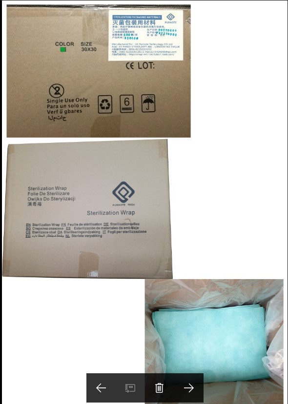 本产品采用聚丙烯材料生产的SMMMS一次性医用灭菌包装医用材料,经过卫生部国家食品药品监督管理局指定的起草中华人民共和国国家标准GB/T19633-2005《最终灭菌医疗器械的包装》的山东济南医疗器械质量监督检验中心全项目严格检测,所有项目均符合企业及国家要求。